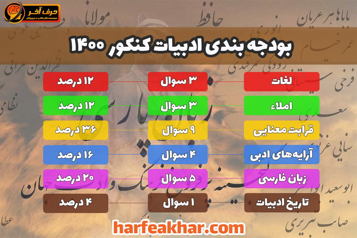 بودجه‌بندی آخرین درس عمومی در کنکور 1400 به شرح زیر است: