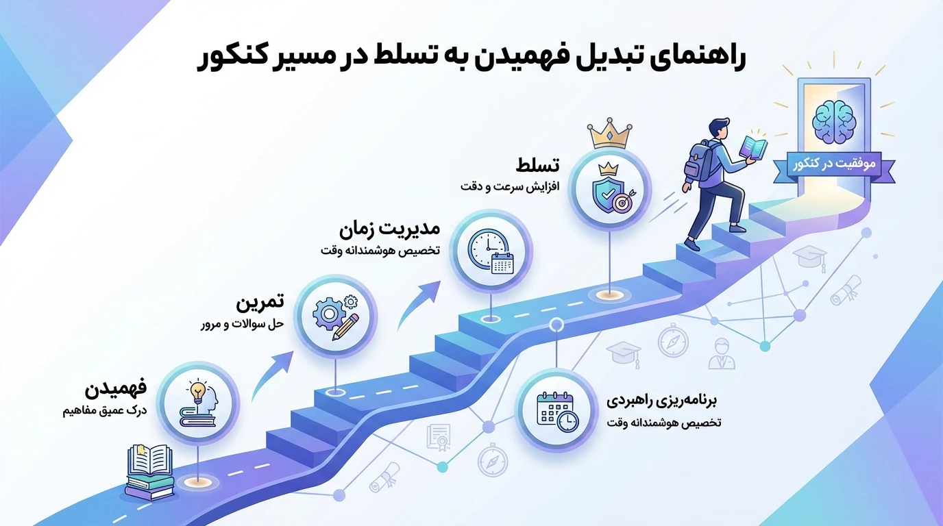 یکی از اشتباهات رایج بین داوطلبان کنکور این است که تصور میکنند با تماشای فیلمهای آموزشی یا دیدن حل سؤال توسط استاد، واقعاً «یاد گرفتهاند». در حالی که این نوع یادگیری بیشتر از جنس فهمیدن است؛ نه مسلط شدن.