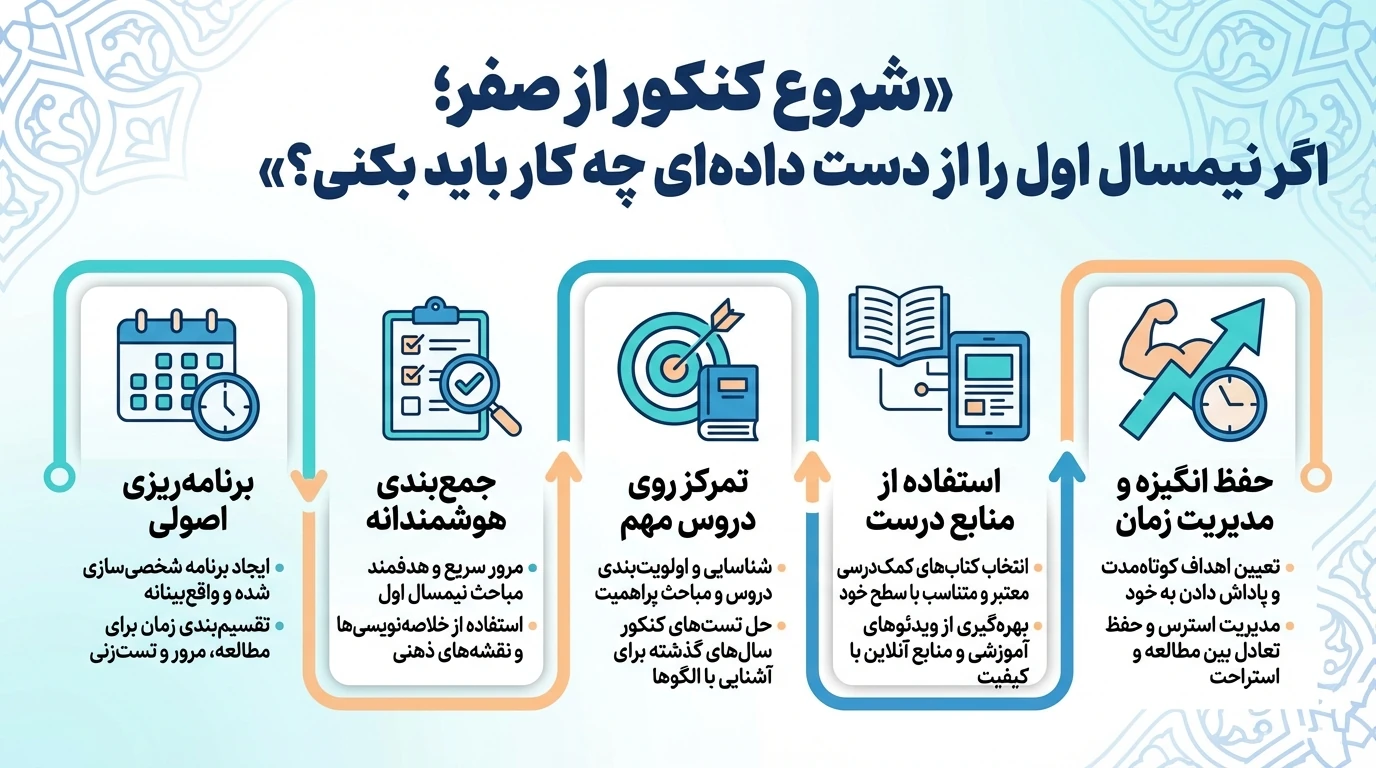 در این مقاله، بهصورت دقیق و کاربردی توضیح میدهیم که اگر در این مقطع از سال هستی، چگونه میتوانی یک شروع اصولی و قدرتمند برای کنکور داشته باشی؛ چه آزمون بدهی و چه ندهی.